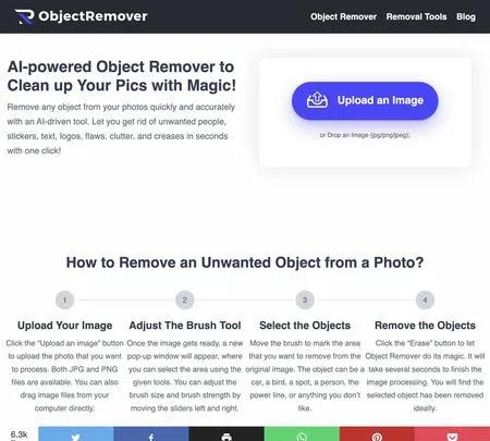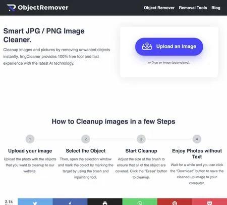 Removal.ai هو خدمة تتيح لك إزالة العناصر غير المرغوب فيها بسهولة من الصور. إنها أداة مفيدة بشكل لا يصدق لشركات التجارة الإلكترونية الراغبة في تنظيف خلفية صور المنتجات، والمصورين الذين يرغبون في إزالة العناصر المشتتة من صورهم، بالإضافة إلى مستخدمي وسائل الإعلام الاجتماعية ومصممي الجرافيك الذين يرغبون في تحسين صورهم أو تصاميمهم. معروفة بسهولة الاستخدام والنتائج عالية الجودة، كما تتيح لك معالجة عدة صور في وقت واحد.