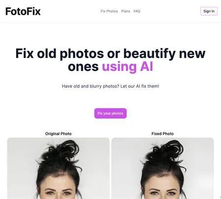 FotoFix ist ein leistungsstarkes webbasiertes Tool, das Ihren alten und unscharfen Fotos mit fortschrittlicher KI-Technologie neues Leben einhaucht. Mit seinem Drei-Stufen-Abonnementmodell können Sie zwischen den kostenlosen, Standard- oder Premium-Plänen wählen, um Ihren Bedürfnissen gerecht zu werden. Genießen Sie Funktionen wie realistische Gesichtsverbesserungen, intelligente Fotorestaurierung und hochauflösende Ausgabe. Seien Sie versichert, dass Ihre Originalfotos nach der Verarbeitung gelöscht werden und Ihre Privatsphäre gewährleistet ist. Erleben Sie die Freude, Ihre kostbaren Erinnerungen in High Definition mit FotoFix, Ihrer persönlichen Foto-Reparatur- und Verbesserungslösung, wiederzuerleben.