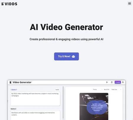 Video Generator von Vidds ist ein leistungsstarkes KI-gesteuertes Tool, das Ihre Ideen in dynamische und ansprechende Videos verwandelt. Geben Sie einfach ein Thema oder Stichwörter ein und beobachten Sie, wie es einzigartige Videoskripte, Ideen und sogar vollständige Videos generiert, komplett mit vorgeschlagenen Bestandsgrafiken. Passen Sie Ihr Video mit Themen, Markenfarben und Größen an, und feinabstimmen Sie es im Vidds-Editor oder laden Sie es direkt herunter. Erleben Sie die Freude, Ihren kreativen Prozess zu beschleunigen, insbesondere in der Ideenphase. Generieren Sie beispielsweise in weniger als einer Minute ein professionell aussehendes Video zu "Video-Marketing-Trends 2023" mit nur 5 kurzen Stichpunkten.