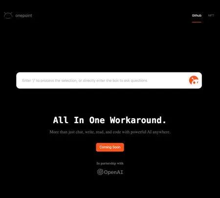 1ptai est un logiciel révolutionnaire qui amène votre expérience de chat au niveau supérieur. Ce n'est pas seulement un outil de chat, mais un puissant assistant IA qui vous permet d'écrire, de lire et de coder n'importe où, n'importe quand. Avec 1ptai, vous pouvez rapidement construire des logiciels, en faisant de lui une solution tout-en-un parfaite pour les passionnés de technologie. Bien qu'il ne soit pas encore disponible, l'anticipation est grande pour cet outil révolutionnaire, développé en collaboration avec un partenaire mystère. Restez à l'écoute pour le lancement de 1ptai, votre compagnon ultime pour un codage et une communication sans faille.