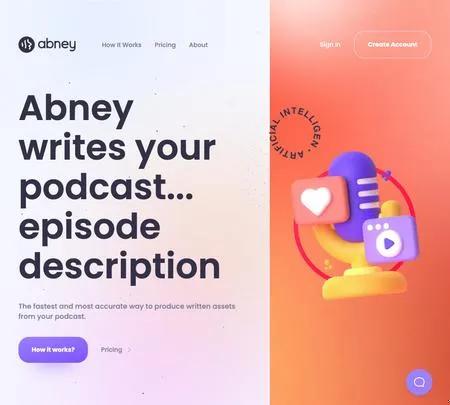 Abney is a revolutionary platform that simplifies podcast creation and promotion. It uses advanced AI to automatically generate show notes, craft engaging episode titles and descriptions, and create ready-to-use social posts. This not only saves time and effort but also enhances the reach and engagement of your content. Just upload your audio, let Abney do its magic, and distribute the content to grow your listener base. Experience the joy of effortless podcasting and promotion with Abney.