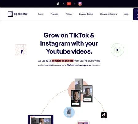 ClipMaker is an innovative service that leverages artificial intelligence to transform your YouTube content into engaging short clips for TikTok and Instagram. It not only saves you hours of editing but also boosts your brand's visibility and follower count. The AI technology smartly analyzes your videos, generates clips, and even adds subtitles, potentially increasing your engagement by 50%. With its auto-schedule feature, ClipMaker effortlessly keeps your TikTok and Instagram feeds updated. Whether you're a YouTube creator looking to expand your reach or a brand aiming to grow, ClipMaker is your ticket to effortless social media growth.