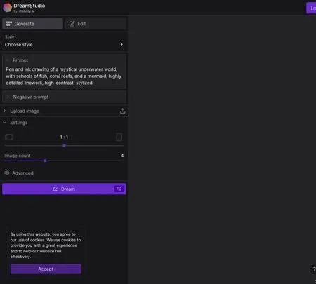 DreamStudio é um aplicativo da web que pode criar imagens usando Difusão Estável. Ele utiliza processamento de linguagem natural para gerar imagens com base na sugestão fornecida. Por exemplo, se você quiser uma imagem de um pôr do sol, basta inserir isso e o DreamStudio irá criá-lo para você. Além disso, existem opções para personalizar a imagem. DreamStudio é mais acessível em comparação com ferramentas similares, tornando-o acessível a muitas pessoas. Você pode usar o DreamStudio para criar logotipos, imagens de avatar, retratos artísticos, visuais publicitários e até mesmo para fins educacionais.