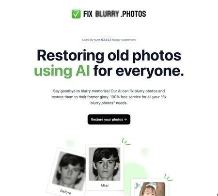 Исправление размытых фотографий - это удобный сервис, который использует искусственный интеллект, чтобы оживить ваши старые или размытые фотографии. С более чем 63 532 довольными клиентами и более чем 92 356 восстановленными фотографиями, этот бесплатный сервис специализируется на восстановлении фотографий лиц. Просто загрузите или перетащите изображение, чтобы начать волшебство. Наслаждайтесь ощущением увидеть, как ваши воспоминания становятся четкими благодаря функции сравнения рядом. Чтобы быть в курсе и поддержать этот инновационный проект, следите за создателем в Twitter.