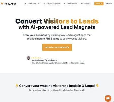 FoxyApps - это удобная платформа, которая без труда превращает ваш блог в мощный инструмент для привлечения лидов. Встраивая приложения на основе искусственного интеллекта, она автоматически собирает лиды, превращая посетителей в потенциальных клиентов. Он также позволяет создавать персонализированные последовательности электронной почты и интегрируется с вашей любимой CRM. Благодаря своему конструктору приложений без кода, любой может создавать и монетизировать простые приложения на основе ChatGPT. От создания привлекательных слоганов с помощью "Product Hunt Launcher" до предложения индивидуальных советов по путешествиям с помощью приложения "Куда поехать в отпуск?", FoxyApps делает привлечение лидов и создание приложений легкими.