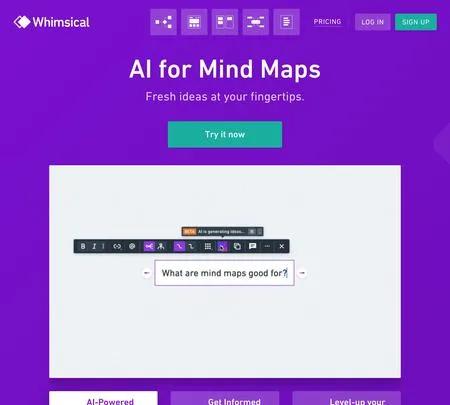 ChatmindAI是一款思维导图工具。它帮助您整理思维,并将想法可视化。例如,可以用于新项目的规划或书籍情节的构思等各种头脑风暴。您可以使用模板轻松开始,并根据自己的需求进行定制。此外,创建的思维导图可以以各种格式进行导出。您可以免费试用,并选择付费计划以使用更多功能。ChatmindAI是整理思维并将想法具体化的强大伙伴。